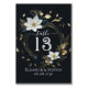 Moderne élégant vintage modèle de cartes de numéros de table de mariage - Élégant noir blanc et or Couronne florale