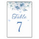 Numéro de table de mariage élégant bleu poussiéreu