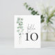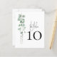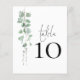 Un format 4,5 x 5,6” semi-brillant de 110lbs, qui est d'une épaisseur similaire à celle d'une carte postale, avec UN par feuille. Numéro de table de mariage en écriture Eucalyptus. La table est réglée dans un style d'écriture manuscrite et votre numéro de table en dessous avec un feuillage élégant à l'aquarelle sur le côté gauche. Personnalisez facilement le numéro. Le même design est sur l'autre côté et sera mis à jour simultanément lorsque vous modifierez le numéro.