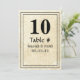 Numéro de table de mariage en toile de jute avec damassé floral vintage, bordure et texte or et noir avec motif floral vintage gris, panneaux de table de mariage