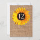 Numéro de table de réception de mariage rustique chic, réalisé dans un style toile de jute marron, avec des graphiques d'un beau tournesol jaune. Personnalisez le numéro pour chaque table de votre réception. Des produits de mariage assortis sont disponibles.