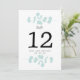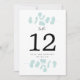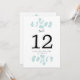 Cette carte de numéro de table de réception de mariage moderne et tendance présente une végétation originale de plante d'eucalyptus dessinée à la main par Paula Pecevich • La Bella Rue // La couleur est un sarcelle clair avec un motif de treillis au dos de la carte de réponse. Le motif au dos est facultatif ; vous pouvez le supprimer et ajouter une couleur unie si vous le souhaitez.