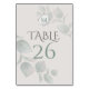 Numéro de table de mariage Eucalyptus Sauge Argent