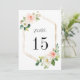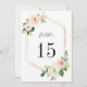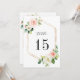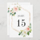 N'OUBLIEZ PAS DE SÉLECTIONNER L'OPTION ENVELOPPE. | La carte de numéro de table de mariage élégante 5" x 7" présente des fleurs aquarelles peintes en rose blush, feuillage vert et blanc avec des cadres hexagonaux en faux or. Pour une personnalisation avancée de ce design, veuillez cliquer sur le bouton OUTIL DE DESIGN BLEU ci-dessus. Les articles assortis sont également disponibles.
