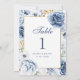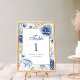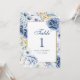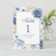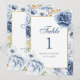 Numéro de table de mariage floral bleu et or moder
