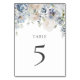Numéro de table de mariage floral poussiéreux bleu