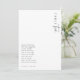 Le numéro de table Estelle présente un design moderne minimaliste avec une police de caractères manuscrite sur fond blanc pour un aspect épuré et simple. Le titre en script est une image qui ne peut être modifiée. Tout le reste du texte est entièrement modifiable. Pour une personnalisation plus avancée de ce design, il suffit de sélectionner le bouton "Personnaliser" ci-dessus.