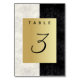 Numéro de table de mariage simple, minimaliste, élégant en faux or noir et blanc avec écriture calligraphique moderne.