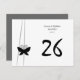 La carte Black Butterfly Table Number comporte un élégant papillon noir avec des ailes étalées et une paire d'antennes bouclées, et est une façon utile de guider vos invités. Customisez avec votre propre texte et insérez un numéro. Trouvez aussi la CARTE D'ESCORT MARIAGE CORRESPONDANTE. © Matin 6