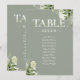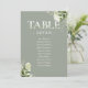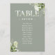 Ces numéros de table de mariage élégants de couleur verte sauge avec une typographie florale de verdure peuvent être personnalisés avec le plan de table de vos invités dans une écriture chic. Les cartes sont imprimées au recto et au verso (recto-verso). Conçu par Thisisnotme©