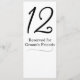 Elégante carte de numéro de table de réception blanche et noire. Imprimée sur les deux côtés cette carte élégante est parfaite, sur un stand. Customisez les numéros de table et le texte réservé sur chaque carte.