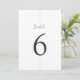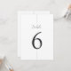 Des numéros de table simples et chics font une déclaration élégante à votre mariage ou événement. Le design comporte "table" en écriture manuscrite, avec la table en dessous dans la typographie serif intemporelle. Le design se répète sur le dos. Couleur : Cendres, un noir doux.