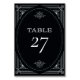 Ces numéros de table mariage glamour ont une touche moderne d'art déco classique. Un cadre géométrique blanc et ornemental orné orne un élégant arrière - plan noir onyx foncé pour un look de mariage spectaculaire et vintage.
