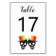 Deux crânes avec arcs en arc-en-ciel couleurs Halloween gay mariage carte numéro de table. Ce design mariage présente les crânes de deux mariés avec des casquettes aux couleurs arc-en-ciel et le numéro de la table.