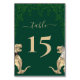 Dinosaure Mariage Carte Numéro de table Jurassic T-Rex Bride & Groom dinos avec eucalyptus vert sur Dark Green Ajoutez une touche de charme préhistorique à vos tables mariages avec cette drôle de carte de numéro de table mariage à thème dinosaure, avec une aquarelle géante illustration d'une mariée T-Rex et mariée dans des tons brun et beige doux et eucalypalypfeuillage des tus. Placé face à un arrière - plan vert foncé, ce modèle unique de numéro de table allie plaisir jurassique et élégance moderne. Parfait pour un dinosaure ou un mariage de style Jurassique, ce numéro de table personnalisable comprend des modèles modifiables pour vous permettre d'ajouter facilement vos numéros de table tout en respectant le reste de votre décor mariage. Une typographie moderne élégante associée à des polices de caractères élégantes lui donne un look poli et cohérent pour votre réception. Idéal pour les mariages en plein air, les fêtes à thème ou les couples qui aiment les dinosaures, ces numéros de table aident les clients à trouver leur place tout en ajoutant une touche amusante et personnelle à votre jour de mariage.
