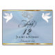 This romantic design features an elegant blue pearl background trimmed with thin gold ribbon, linked hearts & doves with a place for the table number, couple's names and date of event. Available in several colors for your wedding theme. (Ribbon is simulated in the artwork). Designed to coordinate with the "Two Shall Become One - Silver & Gold" Wedding Collection. To change details, click «Personalize». To move the text or change the text size, font, or color click «Click to customize further».