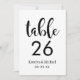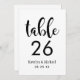 Le numéro de table mariage moderne est doté d'un schéma moderne de couleurs noir et blanc avec une typographie manuscrite et audacieuse. Personnalisez le texte personnalisé décontracté mais élégant pour votre jour de mariage. Veuillez noter, ajoutez chaque carte de numéro de table individuelle à votre panier (Ex. 1, 2, 3...) pour les commander.