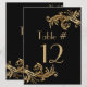Ajoutez une touche élégante à vos tables de réception de mariage avec ces grandes cartes de numéro de table design faites en noir jet, avec des fioritures dorées, sur le dessus et le bas de la carte. Personnalisez le texte doré pour chaque table à votre réception.