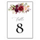 Numéro de table du Mariage Floral Bourgogne et Blu