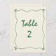 Élever votre décor de réception de mariage avec notre Mariage vert rétro manuscrit numéro de table. Ce charmant numéro de table présente un design manuscrit fantaisiste dans une couleur verte vibrante, ajoutant une touche ludique et nostalgique à vos paramètres de table. Conçues avec soin dans le détail, nos cartes de numéro de table sont conçues pour se démarquer sur vos tables de réception tout en complétant votre thème mariage. Le design d'inspiration rétro ajoute une touche amusante à votre décor, créant une expérience mémorable et attrayante pour vos invités. Parfait pour les couples qui cherchent à insuffler personnalité et charme à leur mariage, notre Mariage vert rétro manuscrit numéro de table est sûr de faire une déclaration et de donner le ton pour une célébration joyeuse. Que vous planifiez un mariage sur le thème rétro ou que vous aimiez simplement les éléments de design ludique, ce numéro de table est l'ajout parfait à votre réception.
