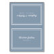Les cartes d'hôtes simples, minimalistes et chic de la mariage ont un design moderne avec une double bordure encadrée de blanc immaculé sur un arrière - plan bleu poussiéreux et tendance. Le design permet de customiser pleinement vos cartes de lieux avec les noms de couples, la date du mariage, le nom de l'invité et le numéro de table ! Commandez chaque carte séparément après la personnalisation du nom d'invité avec le modèle. ***** Veuillez noter que vous devrez utiliser une arête ou une règle droite pour ajouter un pli et un pli en deux. ***** Lorsque plié en deux, l'avant de la carte affiche le nom de l'invité et le numéro de table. Le dos de la carte indique le nom de la mariée, du marié et de la date du mariage dans une belle écriture blanche. La carte est complétée avec goût avec un bleu assorti solide à l'intérieur pour une parfaite finition de la couleur. Envoyez un courriel à invitationsuites@gmail.com afin d'utiliser la fonction de message de ce lien produit pour toute question ou demande de couleur personnalisée.