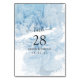 Elégante aquarelle fleurie carte de numéro de table mariage avec pivoine et hydrangée dans les accents de bleu poussiéreux, sauge, et gris.