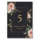 A timeless black wedding table number card adorned with delicate blush roses and refined gold accents. Perfect for classic, romantic, and formal wedding receptions. This sophisticated design adds a graceful touch to your seating arrangement while helping guests find their tables effortlessly.