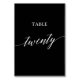 Cet élégant blanc sur la calligraphie noire table vingt numéro de table est parfait pour un mariage simple. Le design neutre présente une carte minimaliste décorée de typographie romantique et fantaisiste. La carte s'imprime à l'avant et à l'arrière (double face). Les autres numéros de tableau de la collection sont vendus séparément.