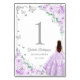 Numéro De Table Elegant Chic Lilac Purple Roses Silver Quinceanera