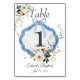 Numéro De Table Élégant floral Dusty Baptême bleu
