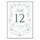 Numéro De Table Elegant Green Ornate Floral Frame Wedding