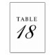 Numéro de table mariage élégant et traditionnel, avec un design simple avec "table" dans une police serif et le numéro dans une police calligraphie. Ce design classique noir et blanc est parfait pour un mariage formel. Ajoutez chaque numéro de table à votre panier individuellement.
