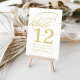 Chaque carte de numéro de table doit être customisée via Personalize it" et individuellement ajoutée au panier. L'élégante conception dorée et blanche de champagne comprend un monogramme fleuri et des accents calligraphiques sur les côtés avant et arrière de la carte (conception recto verso).