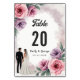 Cet élégant numéro de table à mariage floral aquarelle est parfait pour un mariage moderne. Le design romantique présente un cadre floral aquarelle élégant avec une illustration de mariée et de mariée et une calligraphie noire sur un arrière - plan blanc.