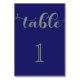 Numéro De Table Élégant Mariage minimal en argent bleu marine