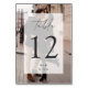 Les élégantes cartes de numéro de table de mariage moderne disposent d'une photo verticale à fond saigné avec votre numéro de table superposé sur un élément rectangulaire blanc pur avec des accents de script de calligraphie chic. Personnalisez avec vos initiales et la date mariage en bas.