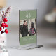 Ajoutez une touche d'élégance à votre mariage avec notre Elegant White Script Sage Green Photo Mariage Numéro de table. Cette carte de table étonnante présente des noms personnalisés dans une police de caractères blanc raffinée, ajoutant de la sophistication à votre célébration. Le numéro et la date du tableau sont magnifiquement affichés dans la typographie blanche sans-serif, assurant à la fois clarté et élégance. Mettez en surbrillance votre photo préférée dans une orientation horizontale contre un arrière - plan vert sauge serein, créant un design visuellement attrayant et mémorable. Parfait pour tous les thèmes mariages, cette carte de table personnalisée est conçue pour ravir vos invités et améliorer votre décor mariage.