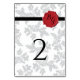 Ce design présente un élégant motif en feuille vintage et une image personnalisée de sceau de cire. L'arrière - plan damassé à motifs de feuilles grises contraste avec le ruban noir et le sceau de cire rouge. Le mélange de gris, de rouge, de noir et de blanc crée un style chic, chic et chic. Design élégant de numéro de table de mariage avec des éléments modernes. La configuration simple de la typographie lui donne un style distinct. Des invitations de mariage et d'autres articles de papeterie sont également disponibles. Customisez le numéro et achetez chaque numéro de table individuellement en fonction du nombre de numéros de table dont vous avez besoin.