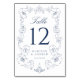 Numéro De Table Elegant Navy Ornate Floral Frame Wedding