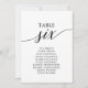 Ces cartes de numéro de table élégantes noires 6 pour plan de table sont parfaites pour un mariage simple. Le design neutre présente une carte minimaliste décorée d'une typographie romantique et fantaisiste. La carte est imprimée recto-verso.