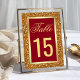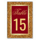 Élégante carte de numéro de table avec une bordure de feuille d'or faux et un magnifique fond de paillettes d'or faux.