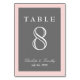 Cartes de table de mariage élégantes en gris avec des bordures rose vif et des polices blanches.