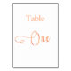 Le numéro de table est écrit avec un élégant script de style écrit à la main. Lettres d'or rose, arrière - plan blanc. Ce numéro de table est également disponible en noir.