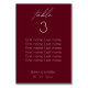 Numéro De Table Élégant Script Burgundy Mariage Seating Chart