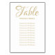 Elégant faux script or et blanc texte personnalisé Mariage Numéro de table, Carte de tableau de siège invité. Expression personnalisable, texte, date, noms.
