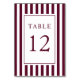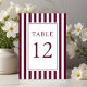 Elegant Striped Burgundy Wedding Table Number.