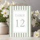 Elegant Striped Sage Green Wedding Table Number.