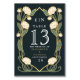 Capture timeless elegance with this Art Nouveau-inspired Table Number! Featuring white peonies, leaves against a rich blue background, this design sets the tone for a sophisticated celebration. Perfect for weddings, galas, and milestone events! Please note that the gold on this product is NOT real foil; it is printed flat. ATTENTION: Items are printed exactly as they appear on your screen when you add them to the cart, so personalize and add each table number you need to your cart individually.