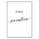 Cet élégant tableau de calligraphie noire dix-sept numéro de table est parfait pour un mariage simple. Le design neutre présente une carte minimaliste décorée de typographie romantique et fantaisiste. La carte s'imprime à l'avant et à l'arrière (double face). Les autres numéros de tableau de la collection sont vendus séparément.