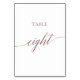 Cette élégante calligraphie en or rose table huit numéro de table est parfaite pour un mariage simple. Le design neutre présente une carte minimaliste décorée avec une typographie romantique et fantaisiste de feuille d'or rose. La carte s'imprime à l'avant et à l'arrière (double face). Les autres numéros de tableau de la collection sont vendus séparément. Remarque : Ce design ne présente pas de véritable feuille d'or rose. C'est un graphisme de haute qualité fait pour ressembler à du papier doré rose.